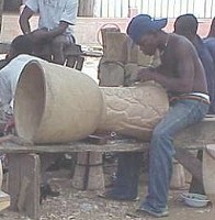 During this 4-week program, students live in Accra, Ghana, working with some of the best carvers in the world, learning the history of African drumming, and exchanging stories and ideas with Ghanaians. Students work one-on-one with a professional carver for 4 hours a day, 5 days a week. The carving partners focus on building a drum for superior sound as well as artistic integrity in the long tradition of Ghanaian artistry, incorporating traditional Asante Adinkra designs into the carving of the drum base. While all students finish the program with a drum that is uncompromising in the quality of its sound and artistry, the size and detailing of the drum will depend on the student's experience and ability in working with the materials and tools. Whether you are new to drumming or an experienced crafts person, the carver you work with will assess your experience and skill-level and work with you at an appropriate level. At the end of the 4 week session, each student will leave with the personalized drum they carved. |
